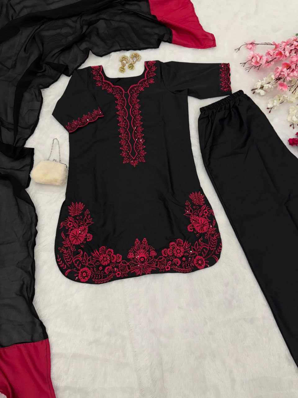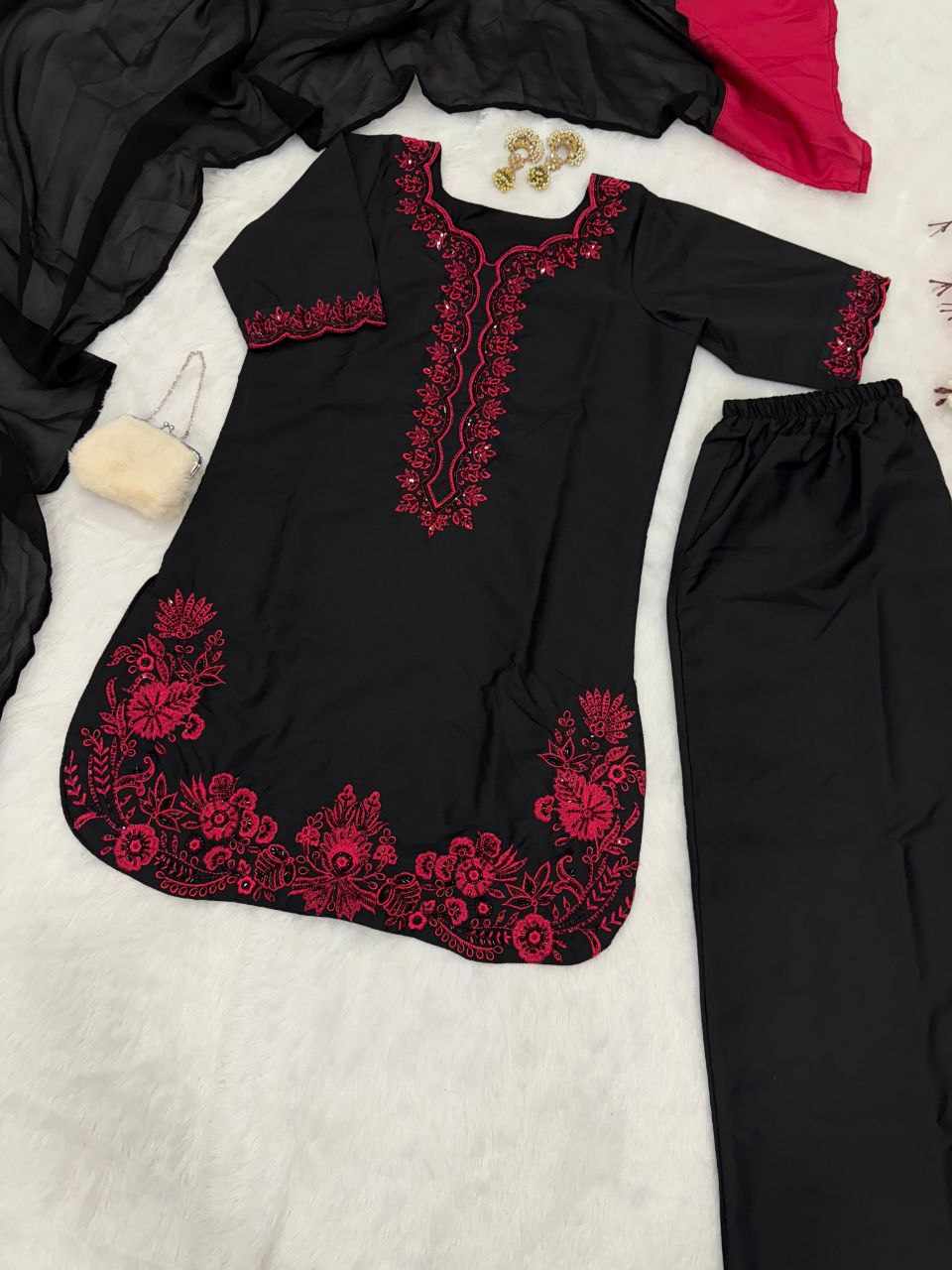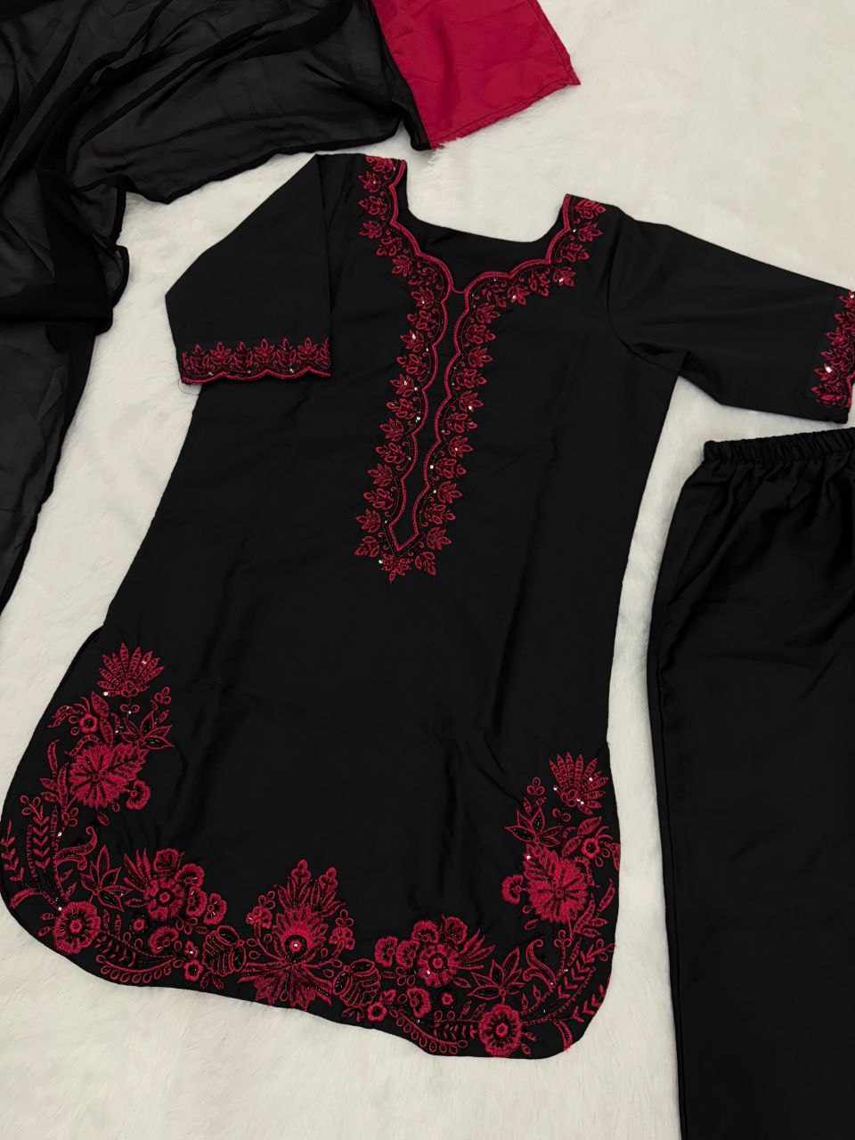 Top – Pure French Crepe kurta with exquisite bead, sequence handwork, and embroidery detailing
