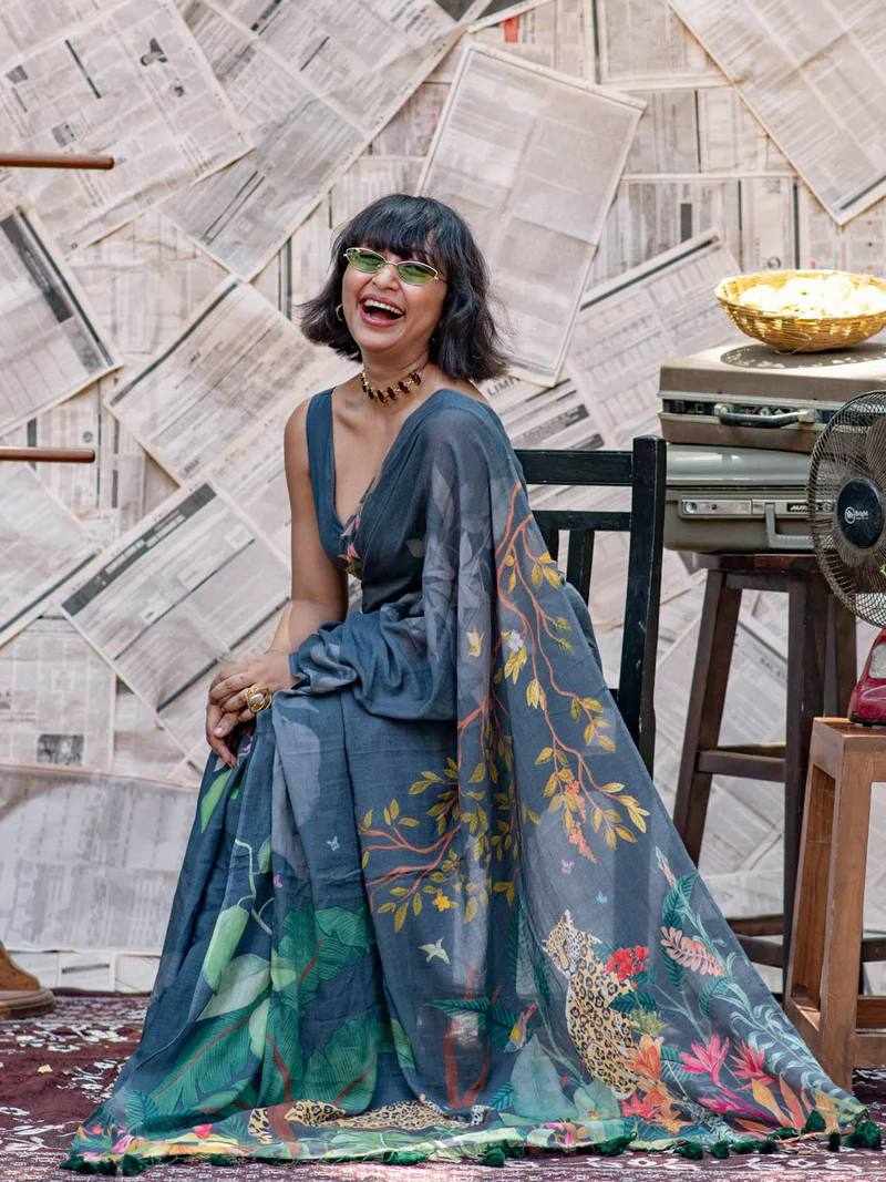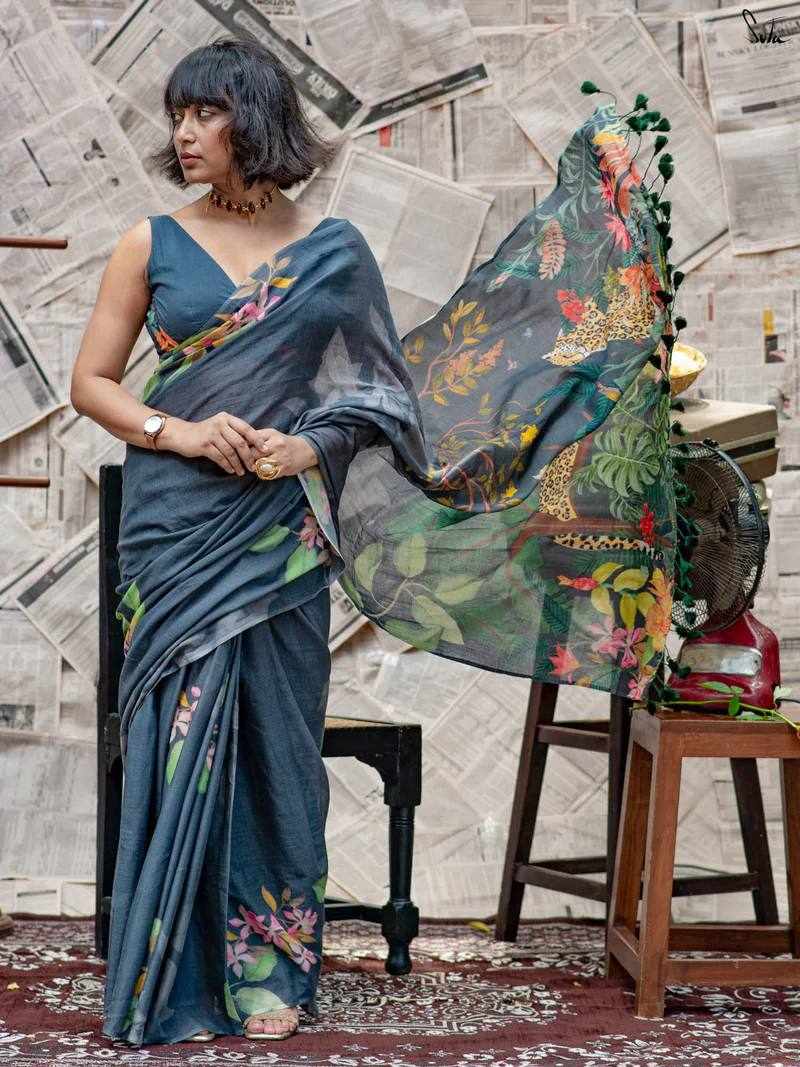 Fabric: Linen Cotton with beautiful digital print and handmade cotton tassels (5.5 m cut)