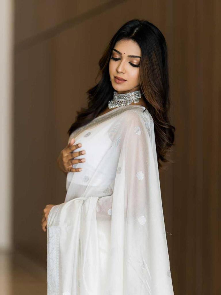 | Name : | KP-R 120 BEAUTIFUL SOFT LILAN White Saree |