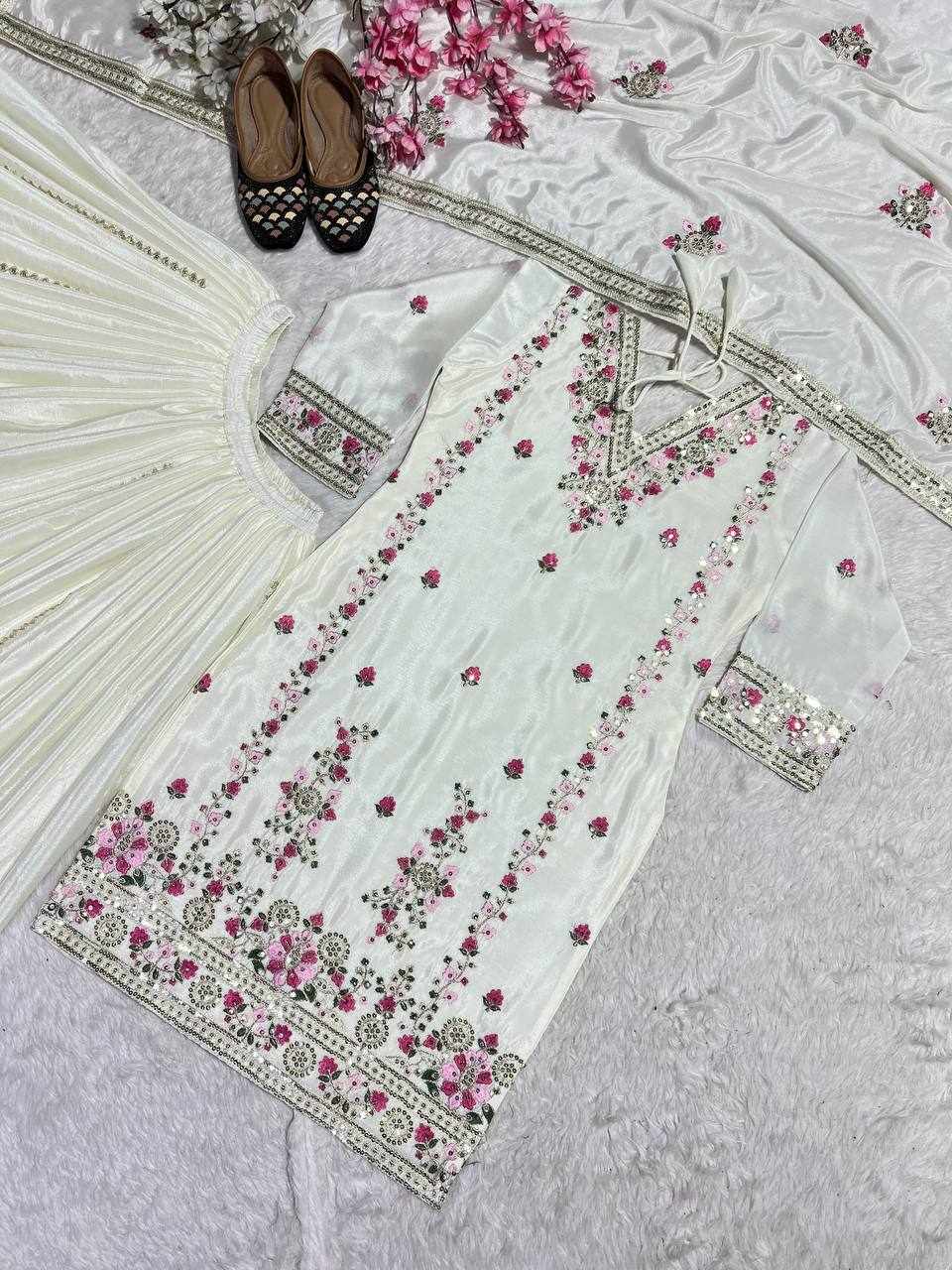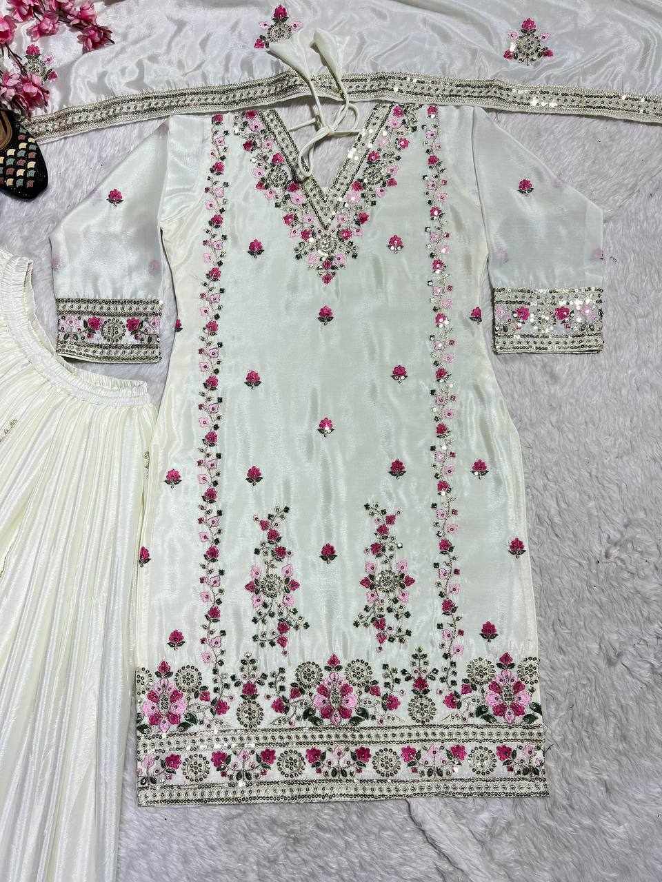 Plazzo Fabric: Pure Heavy Chinnon Silk with Heavy Embroidery Coding Sequence Work (Fully Stitched)