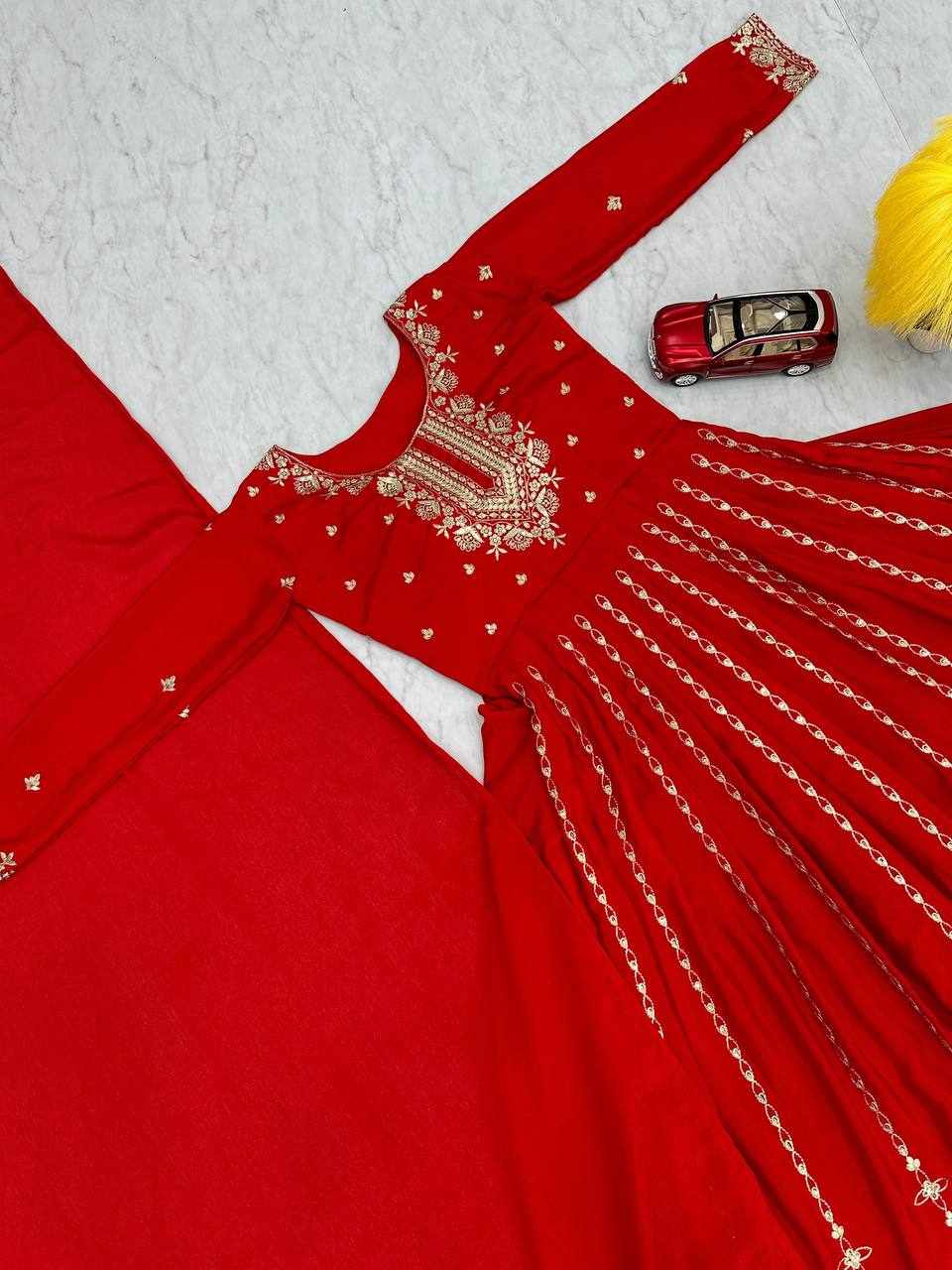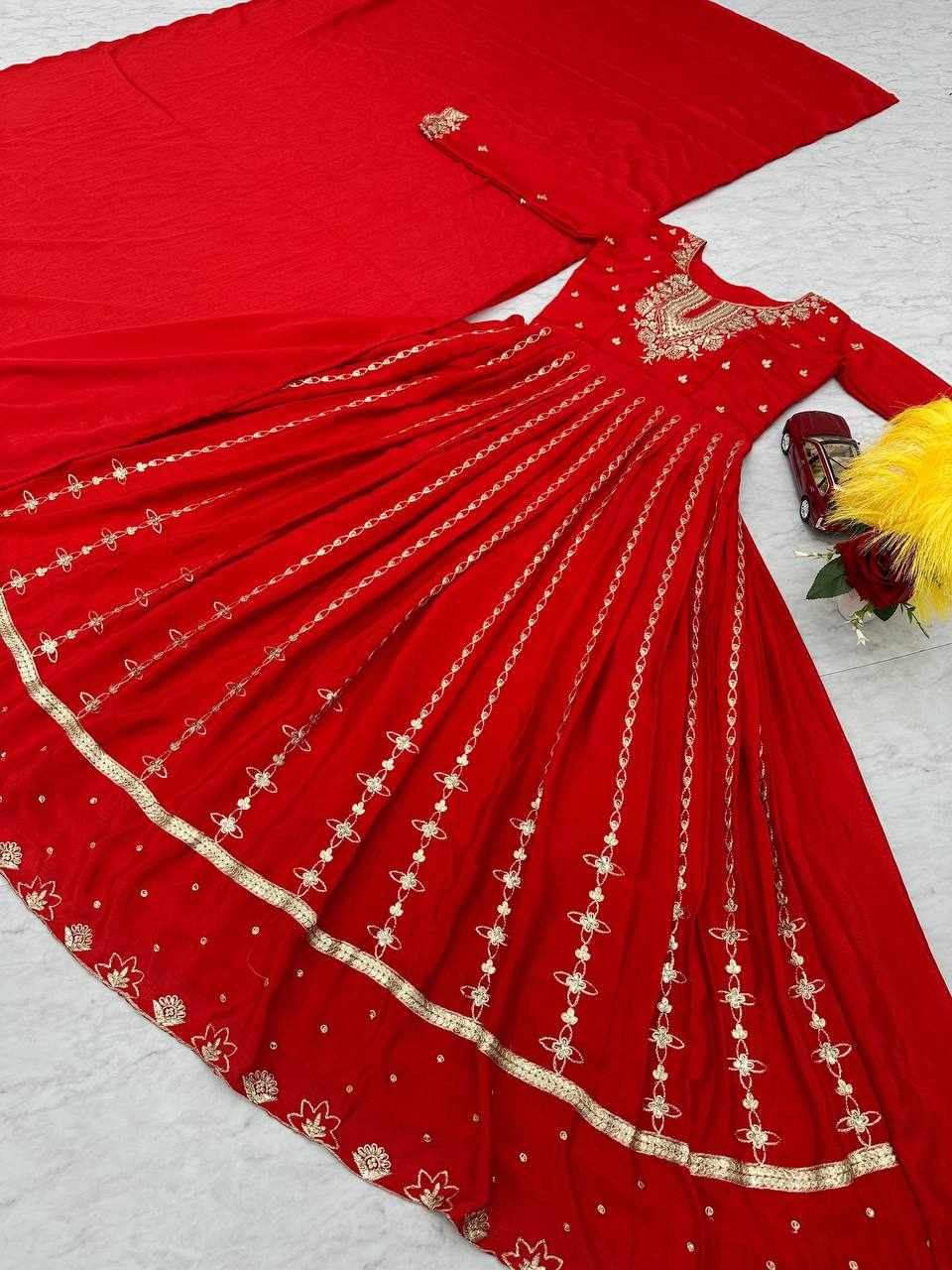 Pc 435 Red Chinon Embroidery Sequence Gown