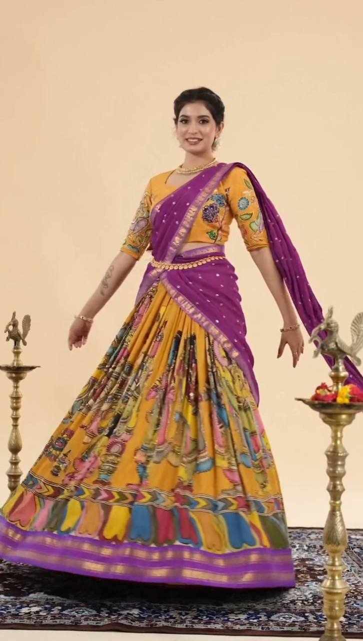 Pc 450 Chent Crep kalamkari print Lehenga