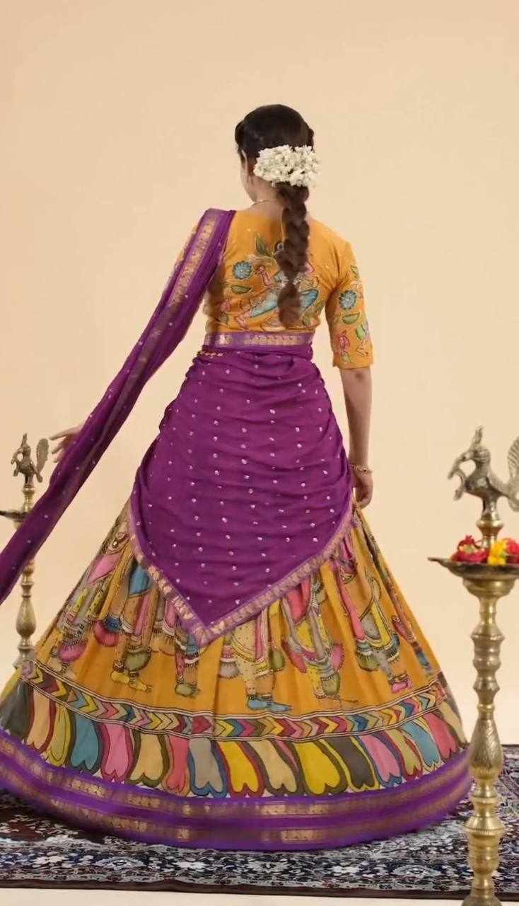 | Name : | Pc 450 Chent Crep kalamkari print Lehenga |