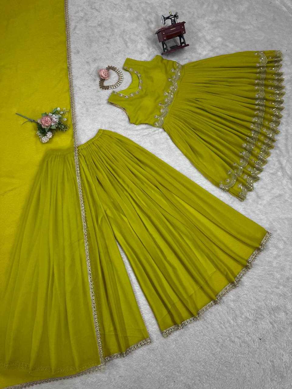 | Name : | RTC 5860 Stunning Foux Gorgette Top And Plazo with Dupatta |